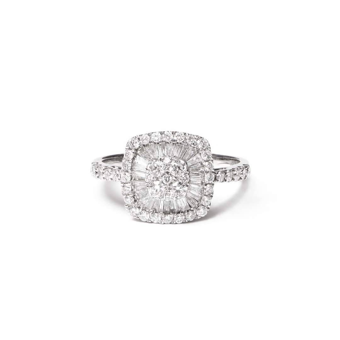 天然鑽石加總1.50克拉圓鑽+梯鑽 18K材質 戒指