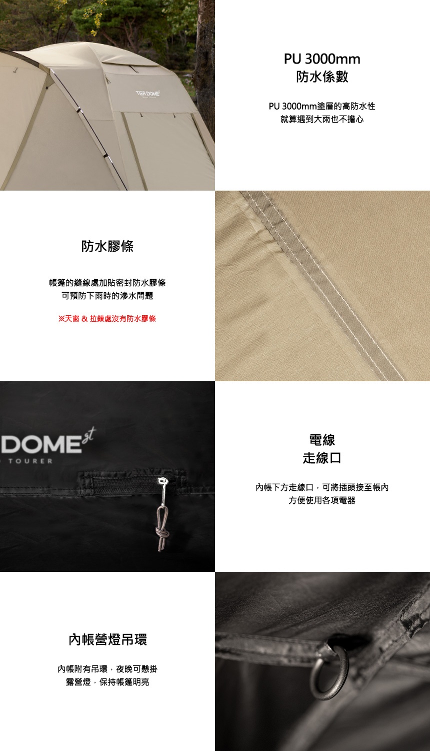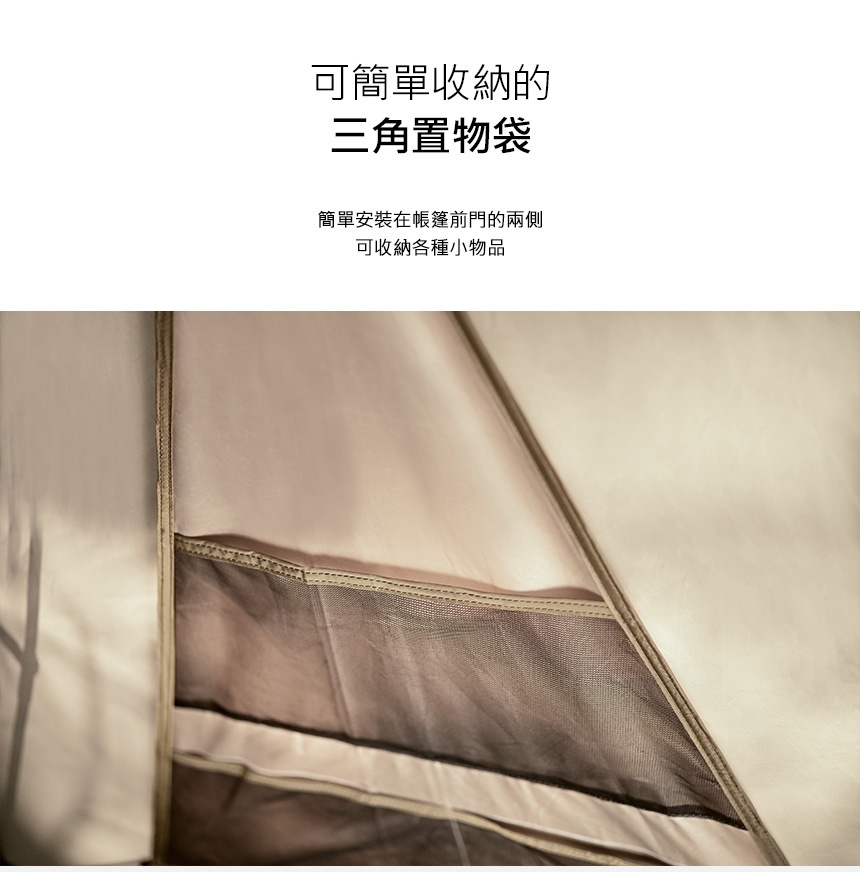 簡單好搭 四支營柱組成 可阻擋冷氣和濕氣的全面地布 有效利用間 後門營柱設計 透氣設計 側邊紗窗、上方透窗 寬敞空間 舒適體驗 內帳採用ZEROLUX設計 提高遮光率 內帳 可獨立使用 簡單收納三角置物袋 重量12KG 容納人數3-4人