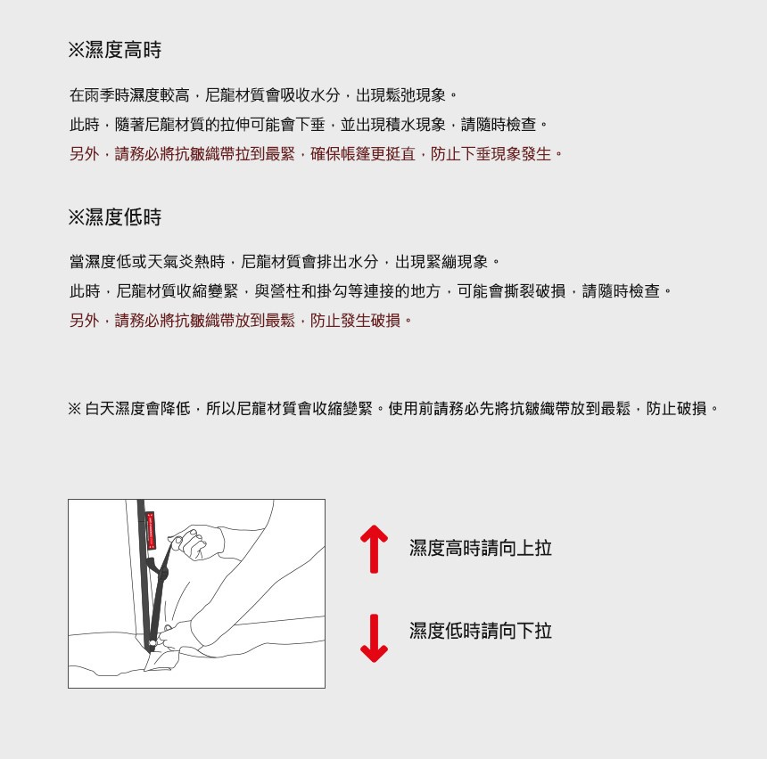 尺寸:搭設時-640*365*(H)220cm/收納時-80*35*(H)35cm/內帳-前門(長邊330)/後門(短邊255)*220*(H)200cm