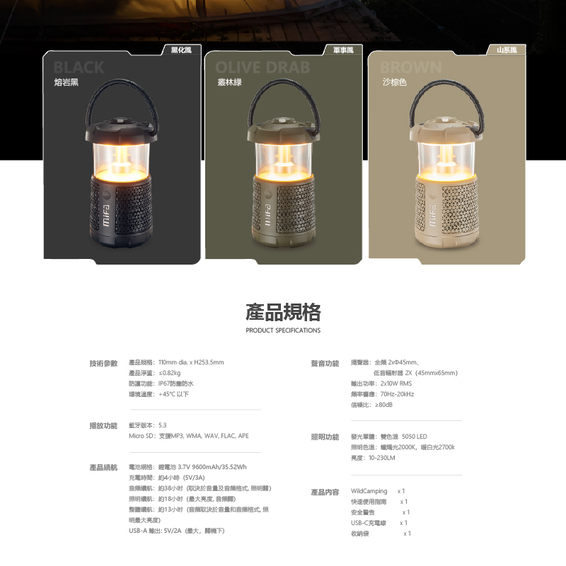 【Mifa】WILD CAMPING 2.0 露營音響燈