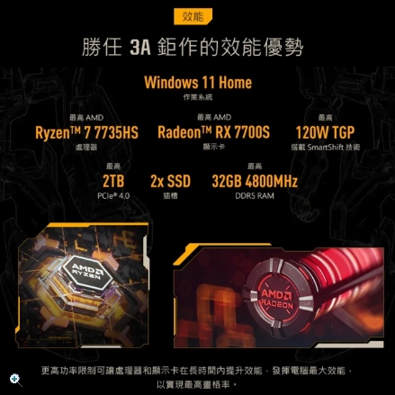 CPU:AMD Ryzen™ 7 7735HS Mobile Processor (8-core/16-thread, 16MB L3 cache, up to 4.7 GHz max boost)