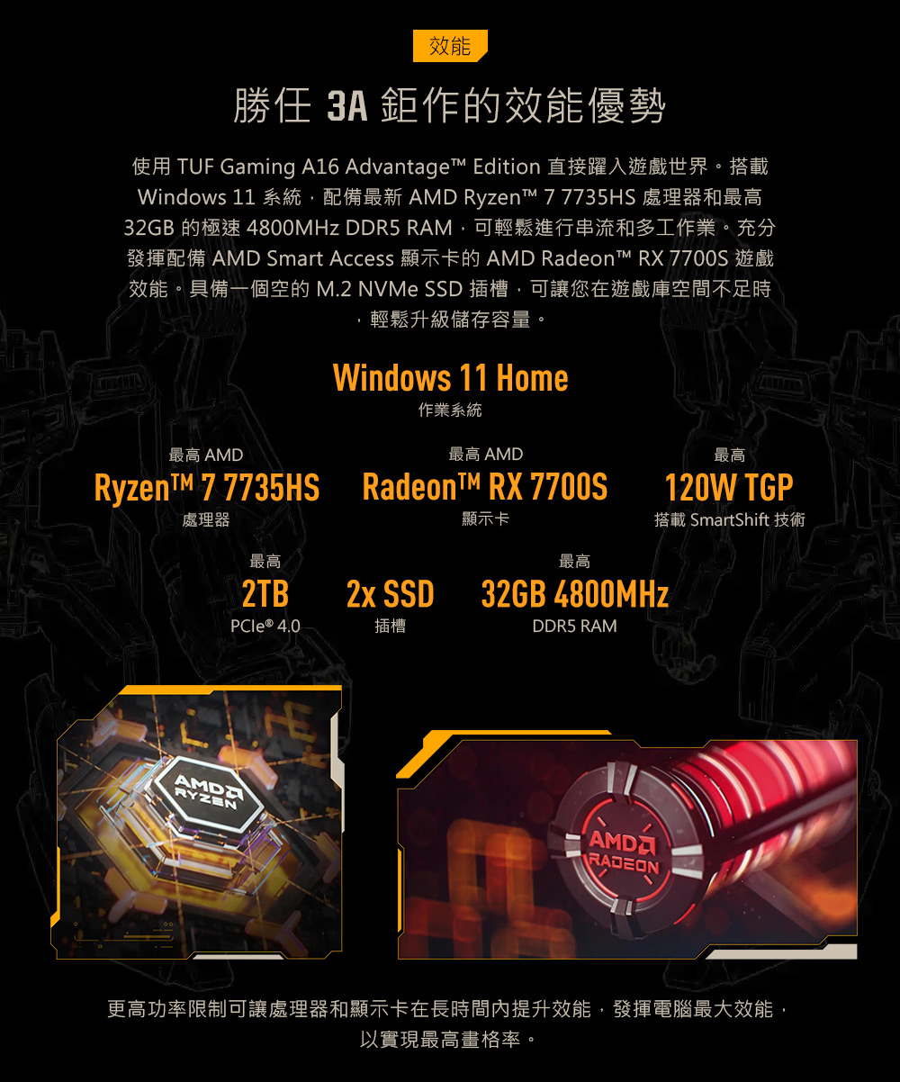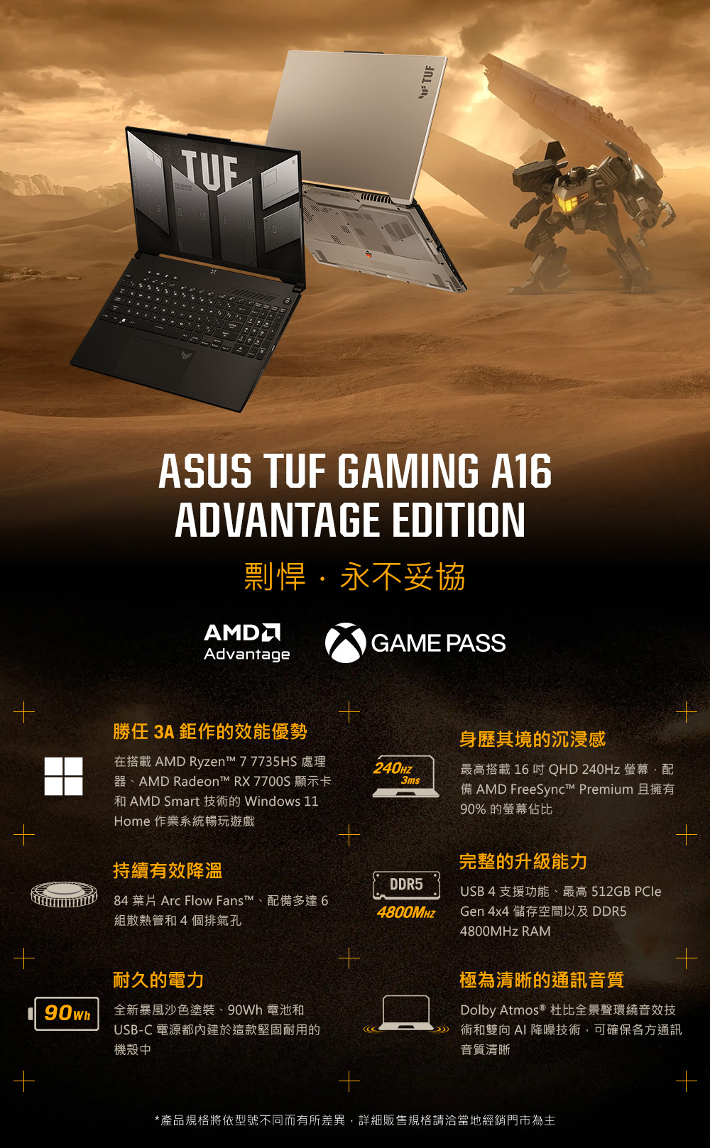 產品型號:FA617NT-0022C7735HS (ASUS TUF Gaming A16 Advantage Edition 暴風沙)