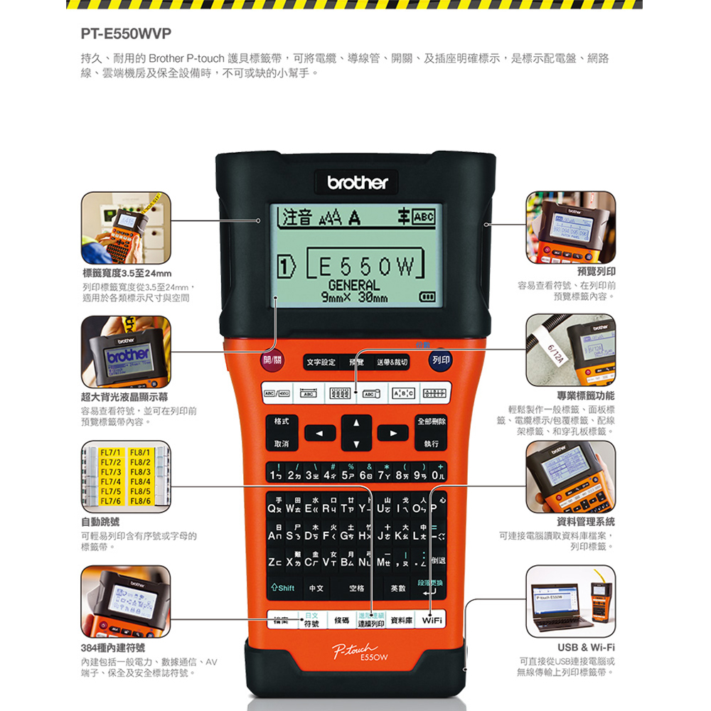 BROTHER PT-E550WVP 工業用手持式無線標籤機(網路配線/工業廠務/智慧宅/AI/商用大印量客製化)