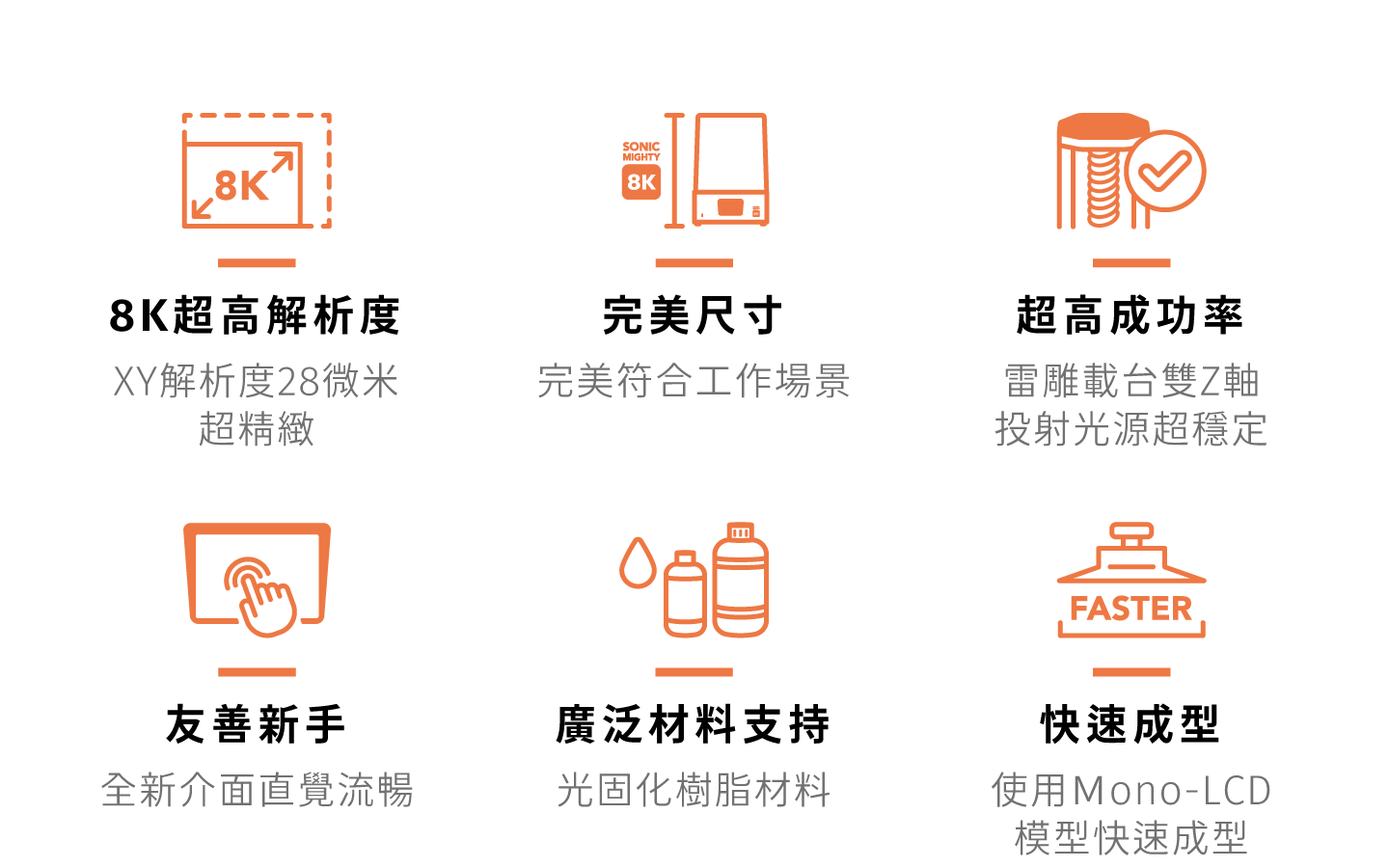 高精細 8K 解析度。 超過 500 位 Amazon 五星好評推薦。 10.1 吋 XY 大型列印區域。 提供直觀、輕鬆上手的操作體驗。 可滿足多種列印需求,尤其適合中小型列印。