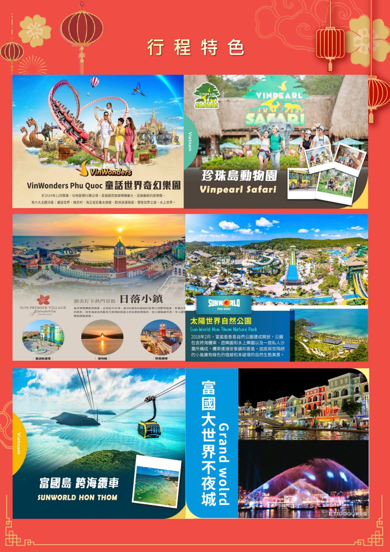 4.越南近年積極開發建設,住宿,電⼒,交通及路況等均未完善,請貴賓抱持入境隨俗的渡假⼼情,欣賞越南獨特的文化美與精采。