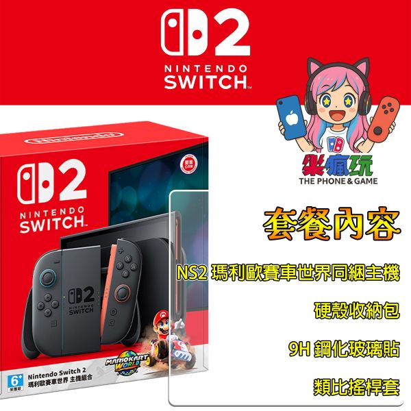 🔴套餐內容:NS2瑪利歐賽車世界主機同捆組+硬殼收納包+9H鋼化玻璃貼+類比搖桿套