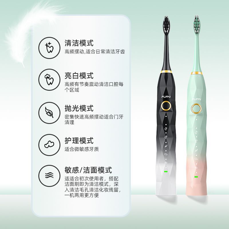 (共有清潔,美白,拋光,護理,敏感 五種模式)