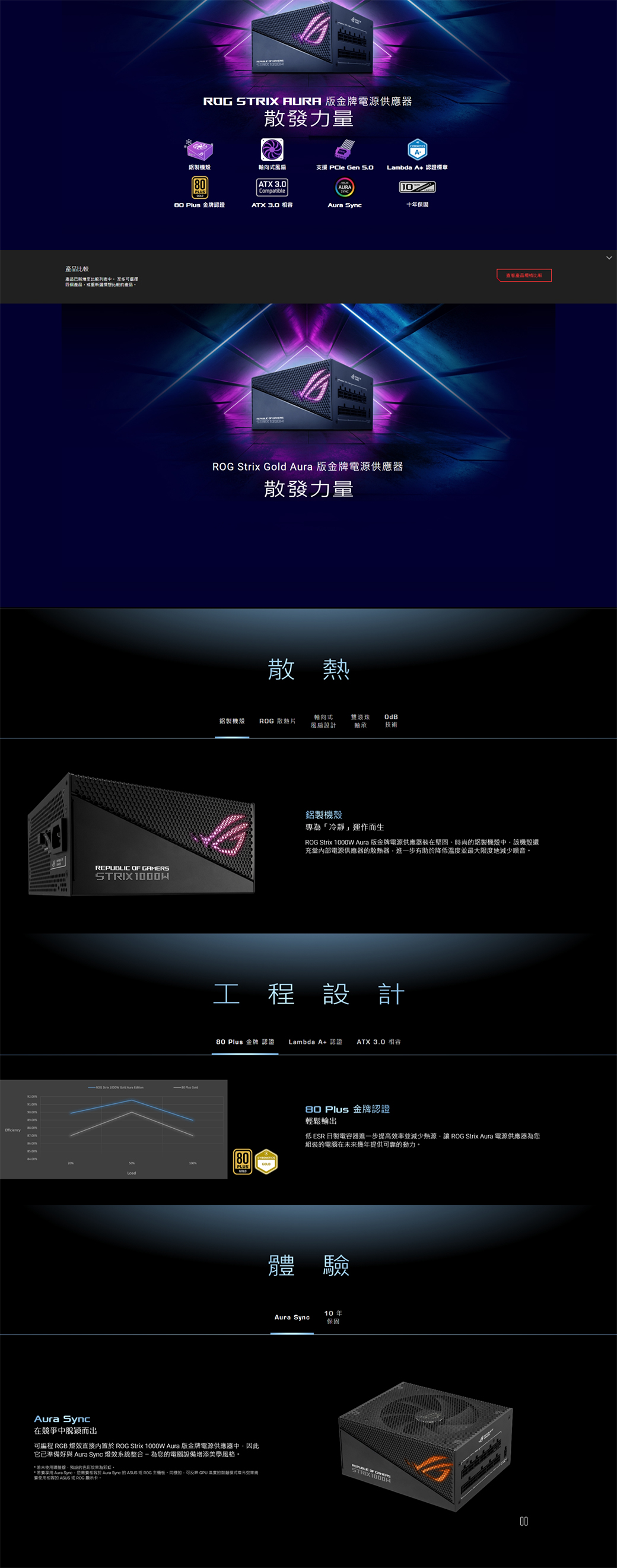 華碩 ROG STRIX 1000W AURA Edition 雙8/金牌/全模組/ATX3.0(PCIe 5.0)