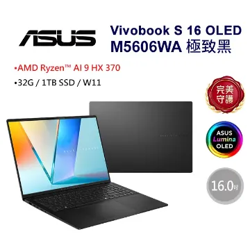 AMD Ryzen™ AI 9 HX 370 Processor 2.0GHz 16.0-inch 3.2K (3200 x 2000) OLED 16:10 aspect ratio 32GB LPDDR5X on board Win11 文書 影音軟體 YT去廣告 原廠兩年保固
