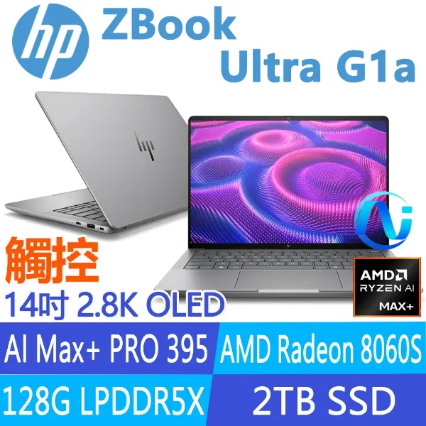 TOP1 HP 惠普ZBook Ultra G1a 14吋2.8K觸控OLED工作站(AI Max+ PRO 395/128G/2T SSD/W11P/WSL2/1年保固/BK6M7PT)
