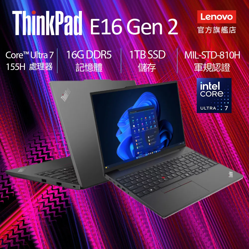 TOP1 LENOVO 聯想ThinkPad E16 Gen 2 21MAS01X00 黑 (Ultra7 155H/16G/1TB PCIe/W11/WUXGA/16)