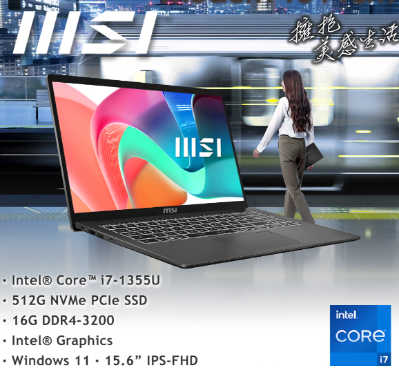TOP16 MSI 微星Modern 15.6吋 商務筆電灰色(i7-1355U/8GBx2/512GB/WIN11/F13MG-240TW)