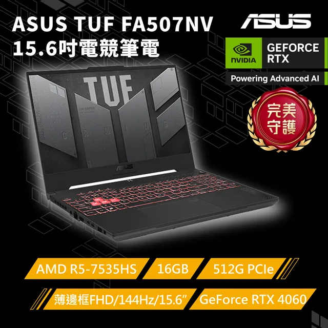 NVIDIA® GeForce RTX™ 4060 8GB GDDR6 (具備MUX獨顯直連 AMD Ryzen™ 5 7535HS Processor 3.3GHz 16GB DDR5-4800 SO-DIMM Win11 文書 影音軟體 YT去廣告 原廠兩年保固