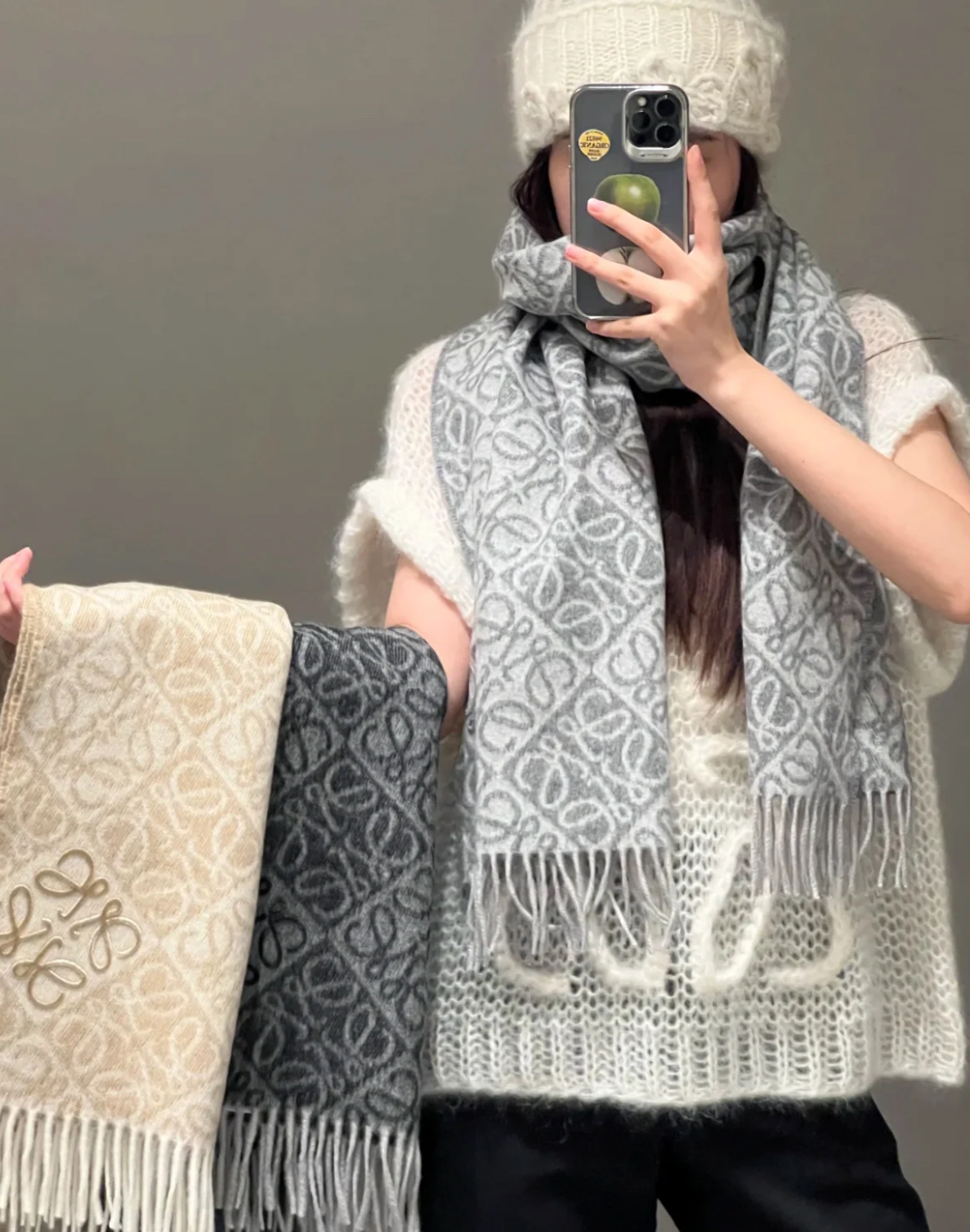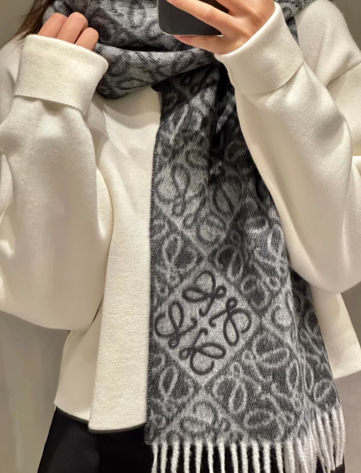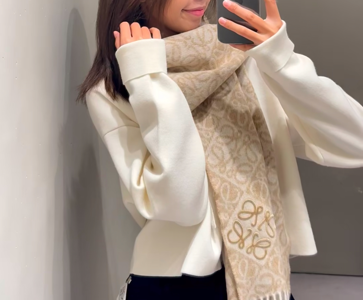 (現貨)新款Loewe 羊毛圍巾 奶茶色