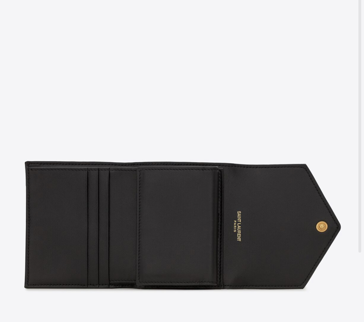 YSL MONOGRAM 粒面壓紋皮革多摺短夾