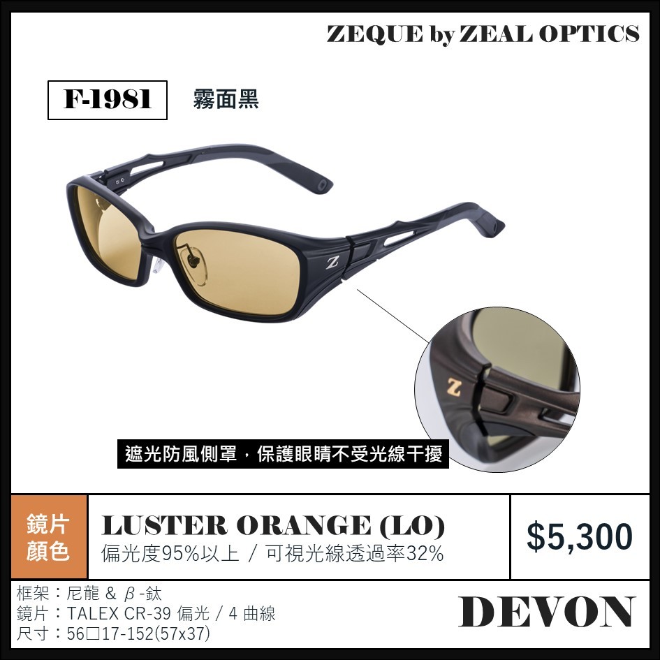 F-1981 鏡架MATTE BLACK 鏡片LUSTER ORANGE(適用於惡劣天氣,屬光日落實等,魚活耀時期黃金時段)