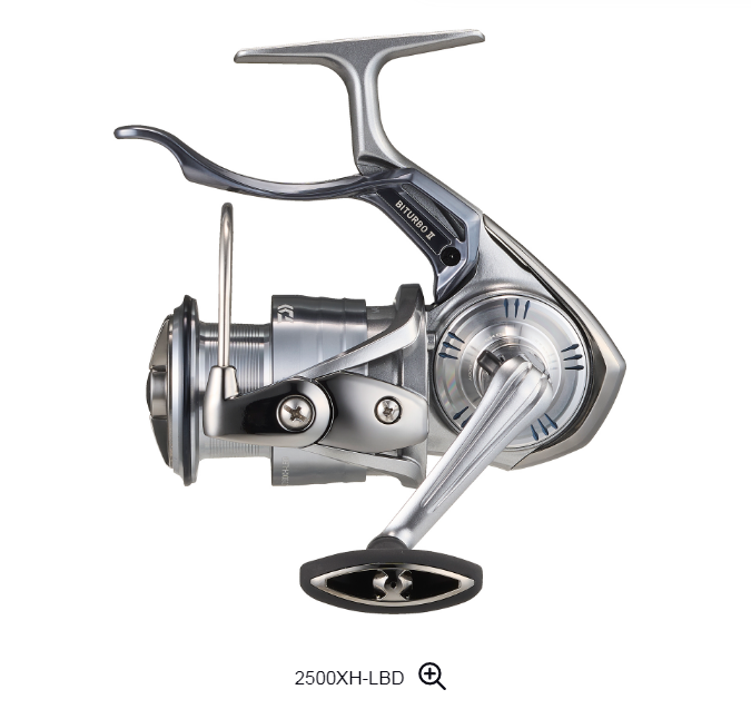 2500XH-LBD配備與競賽 LBD 相同的 ZAION 手柄和桿、與 3000XH 相同的 6.8 齒輪比以及纏繞長度為 103 厘米的齒輪的全能型號。