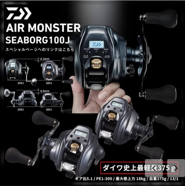 SEABORG 100J/JL DAIWA史上最輕量375g 重量輕盈即是感度「AIR MONSTER」