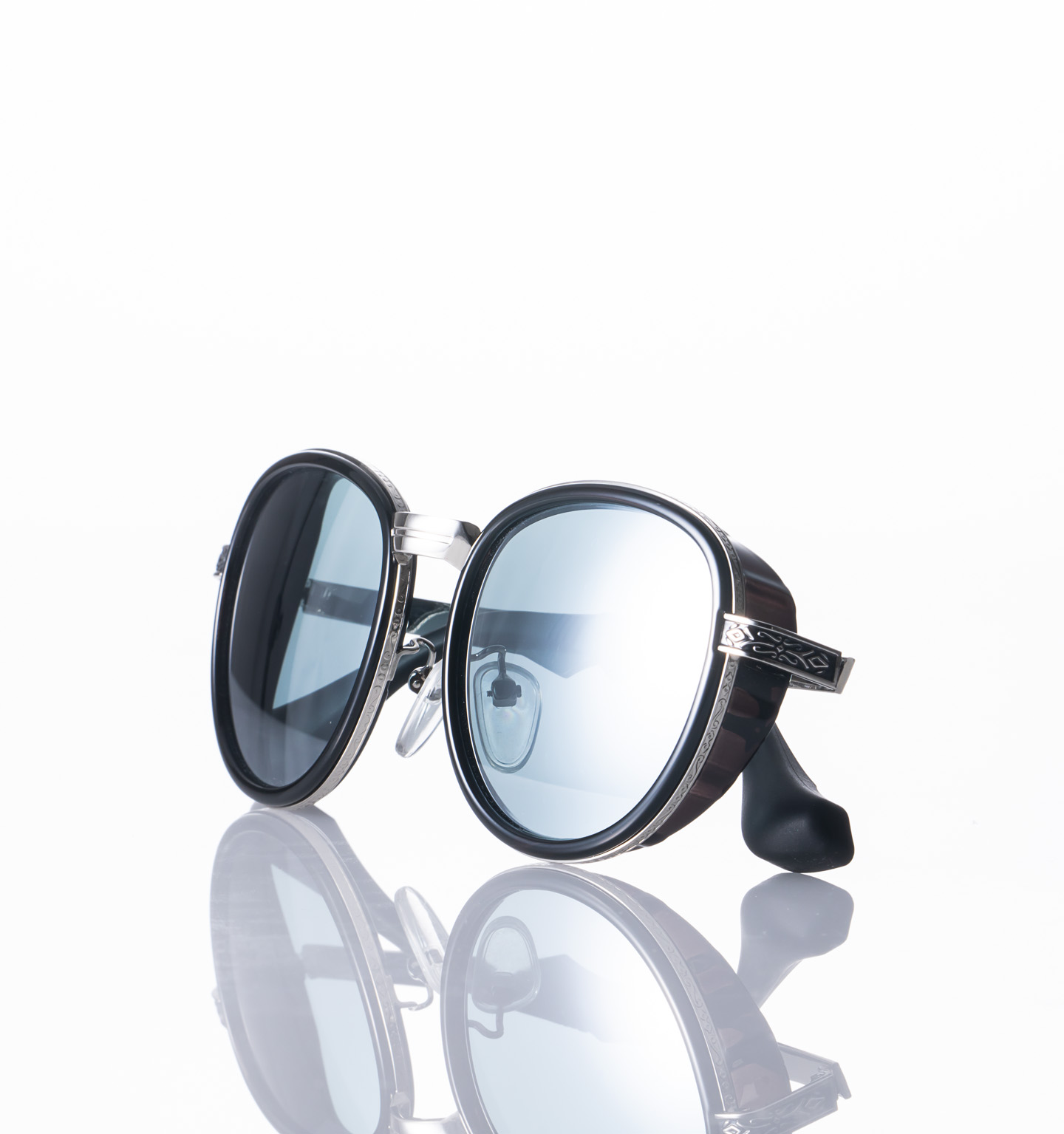 具有較大垂直寬度的 Boslington 鏡頭形狀,易於在各種場景中使用。雙層結構的雙層邊框,在飾有景泰藍和浮雕的奢華金屬框架內結合了樹脂遮光罩。厚度可靈活調節的金屬板材鏡腿和考慮到舒適度平衡的大量現代部件。組合框架具有引人注目的深度設計,不同的元素和紋理重疊。