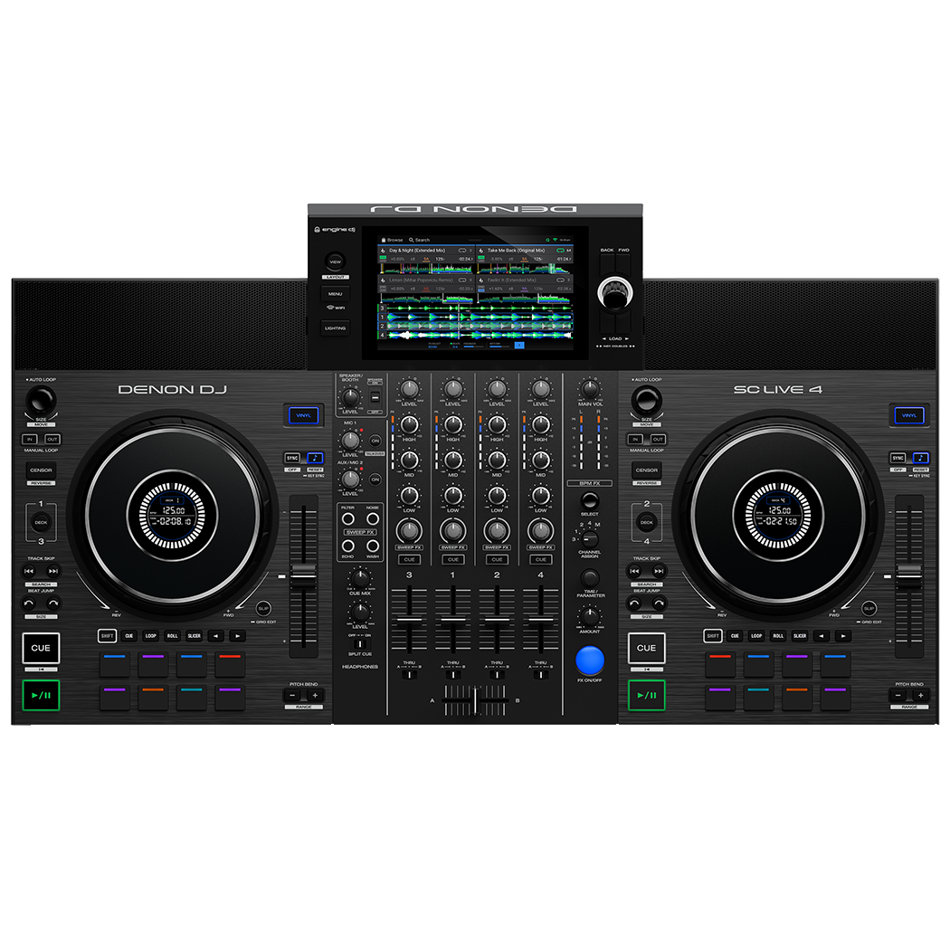 SC LIVE 4 繼承了 Denon DJ 的旗艦產品 SC6000 PRIME 媒體播放器和舞場配置混音器的專業俱樂部標準設計、功能和直觀的工作流程,將舞場標準套裝設置的強大功能融合到行動力十足且直觀的 4 軌獨立設備中DJ 獨立系統。