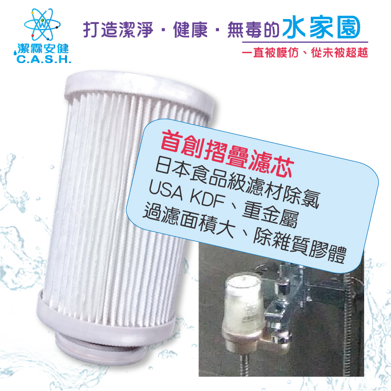 ▪ 首創摺疊濾心.過濾雜質.膠體.過濾面積大 ▪ 有效去除水中餘氯.重金屬 ▪ DIY安裝簡單.濾心更換方便 ▪ 日本食品級濾材.USA KDF.