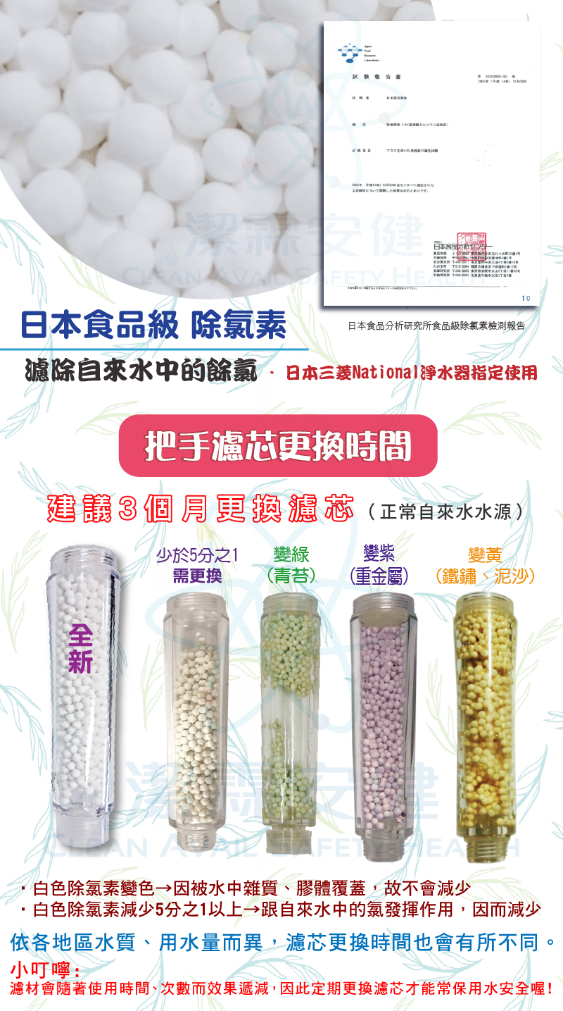 適用範圍:居家用水,末端過濾(潔霖安健多功能系列、基本除氯系列之沐浴器)