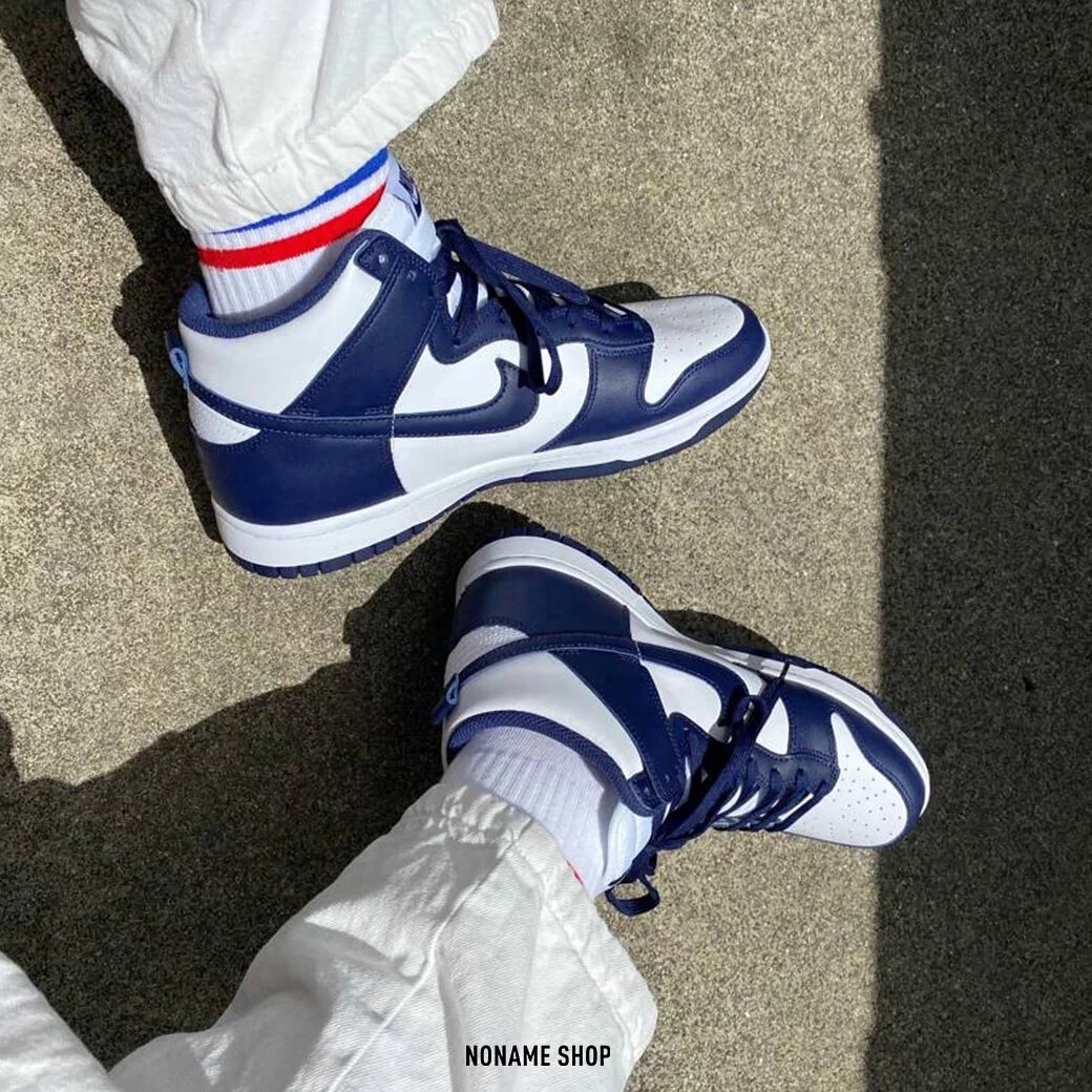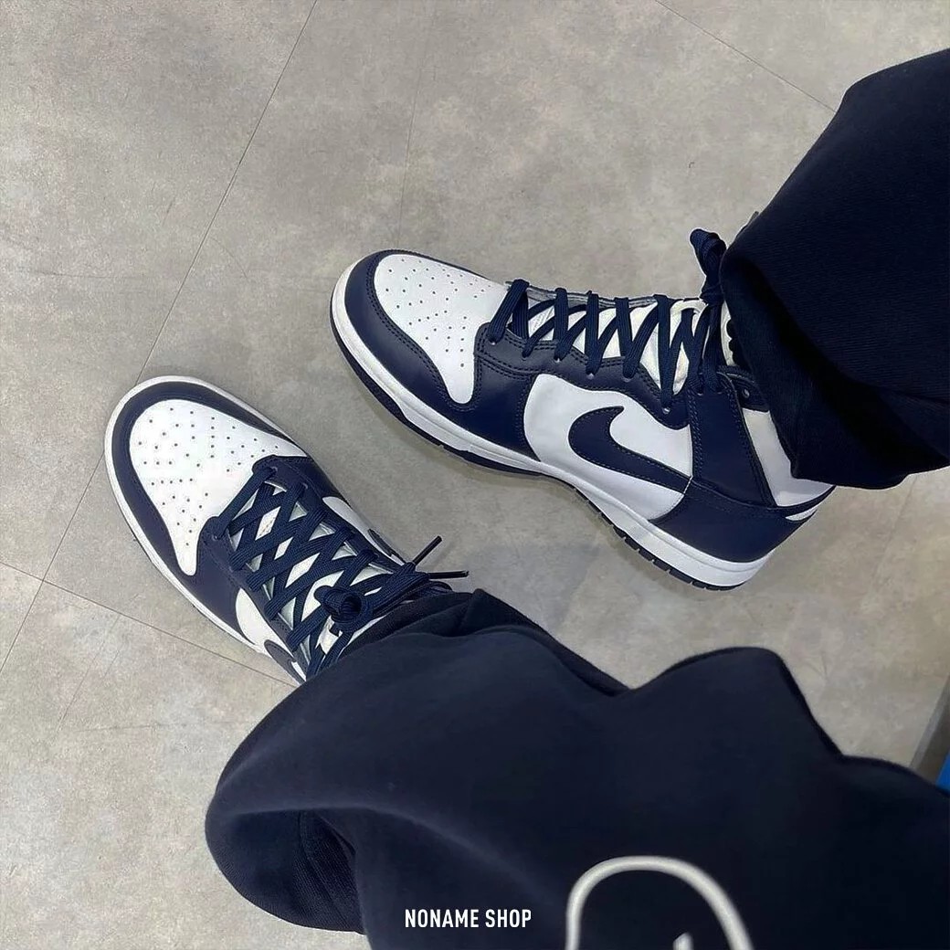 🔹NIKE DUNK High 最新配色「Midnight Navy」維持經典輪廓外觀,運用優質白色皮革製成基本鞋面,而「Midnight Navy」注入覆蓋飾片、側邊Swoosh、鞋帶、內裏與大底等細節之處,其染色質感相對突出,以最簡潔的二元色調呈現其主題配色,更是忠實彰顯「Be True to Your School」其系列精神