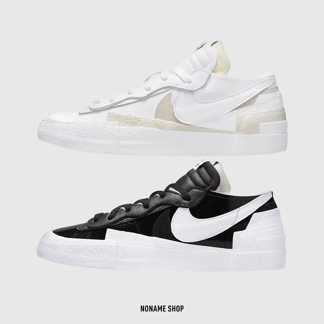 🔹採用亮面漆皮取代傳統皮革鞋面,並融入 sacai 獨有的解構美學,在鞋帶、鞋舌、鞋跟等區塊堆疊出層次效果