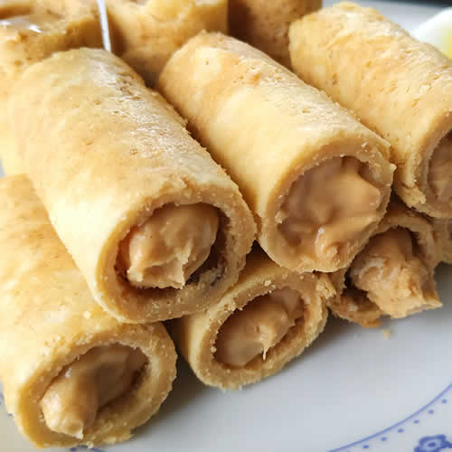 酥鬆的蛋捲包裹著內餡飽滿的花生醬
