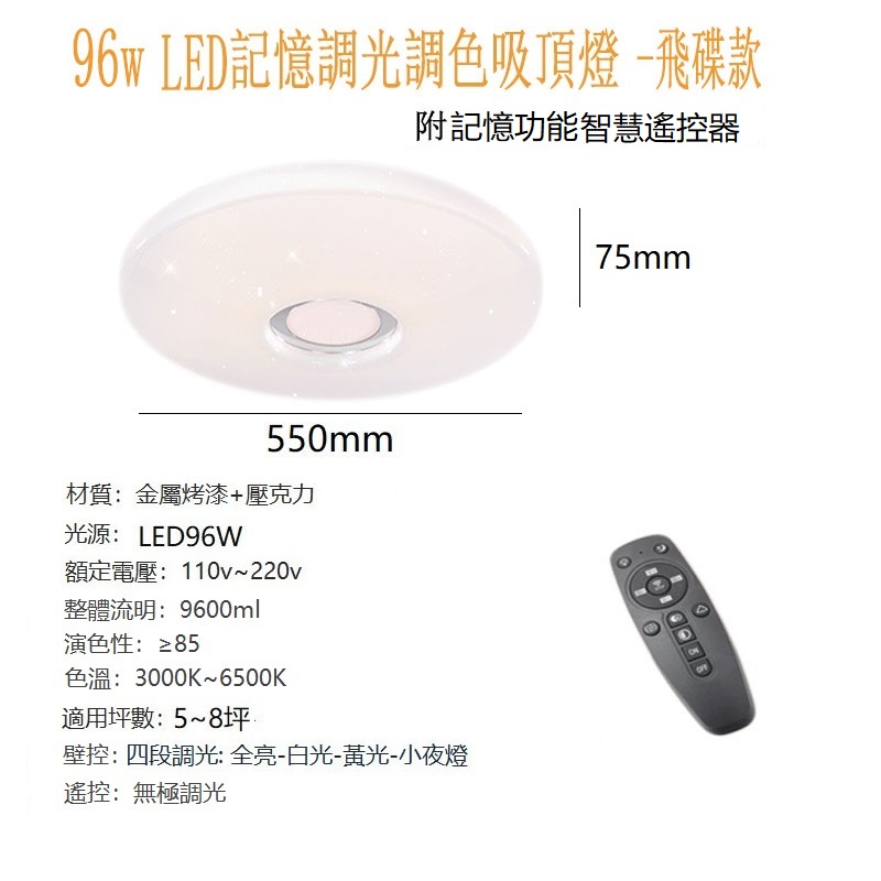 96w LED飛碟星㸃智慧調光调色吸頂燈
