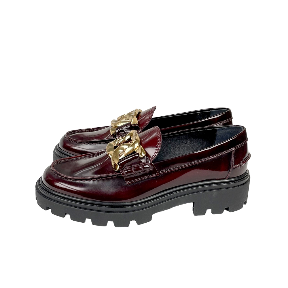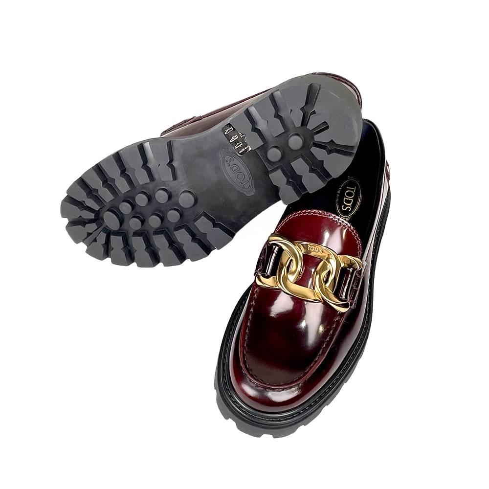 TOD’S KATE 最新款立體金屬釦飾厚底樂福鞋(酒紅色)