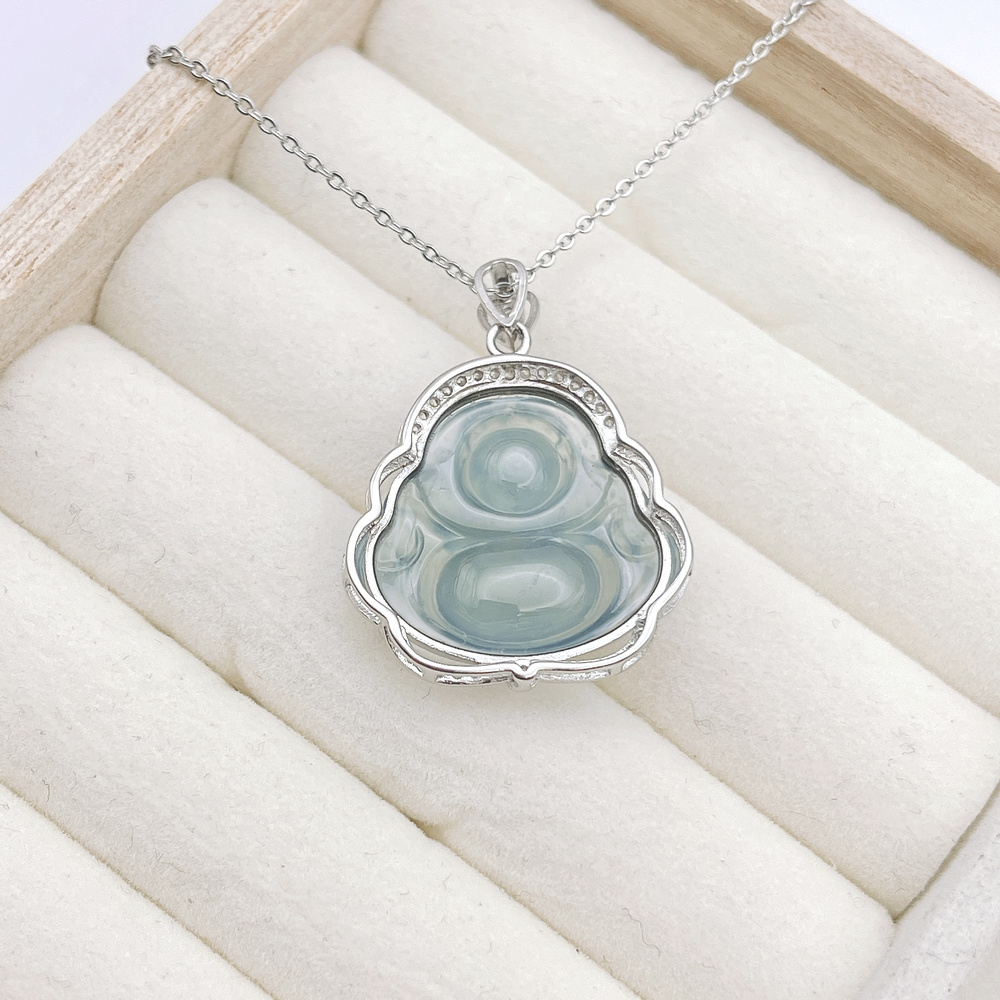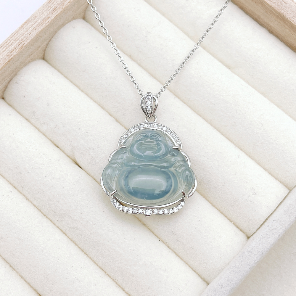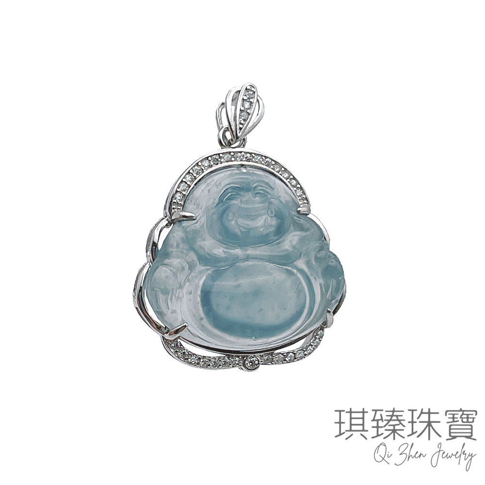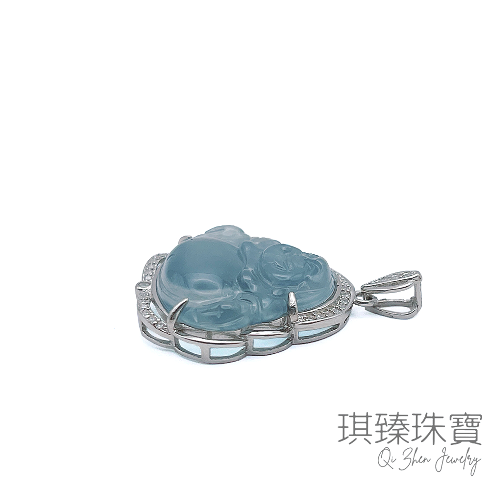 【琪臻珠寶】天然A貨翡翠冰種藍水招財佛公吊墜(S925銀鑲_招財彌勒佛_隨機出貨)