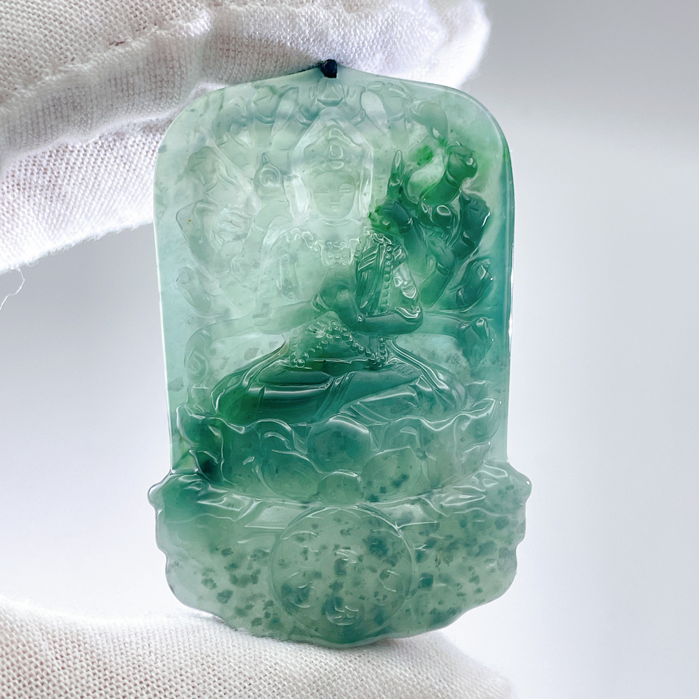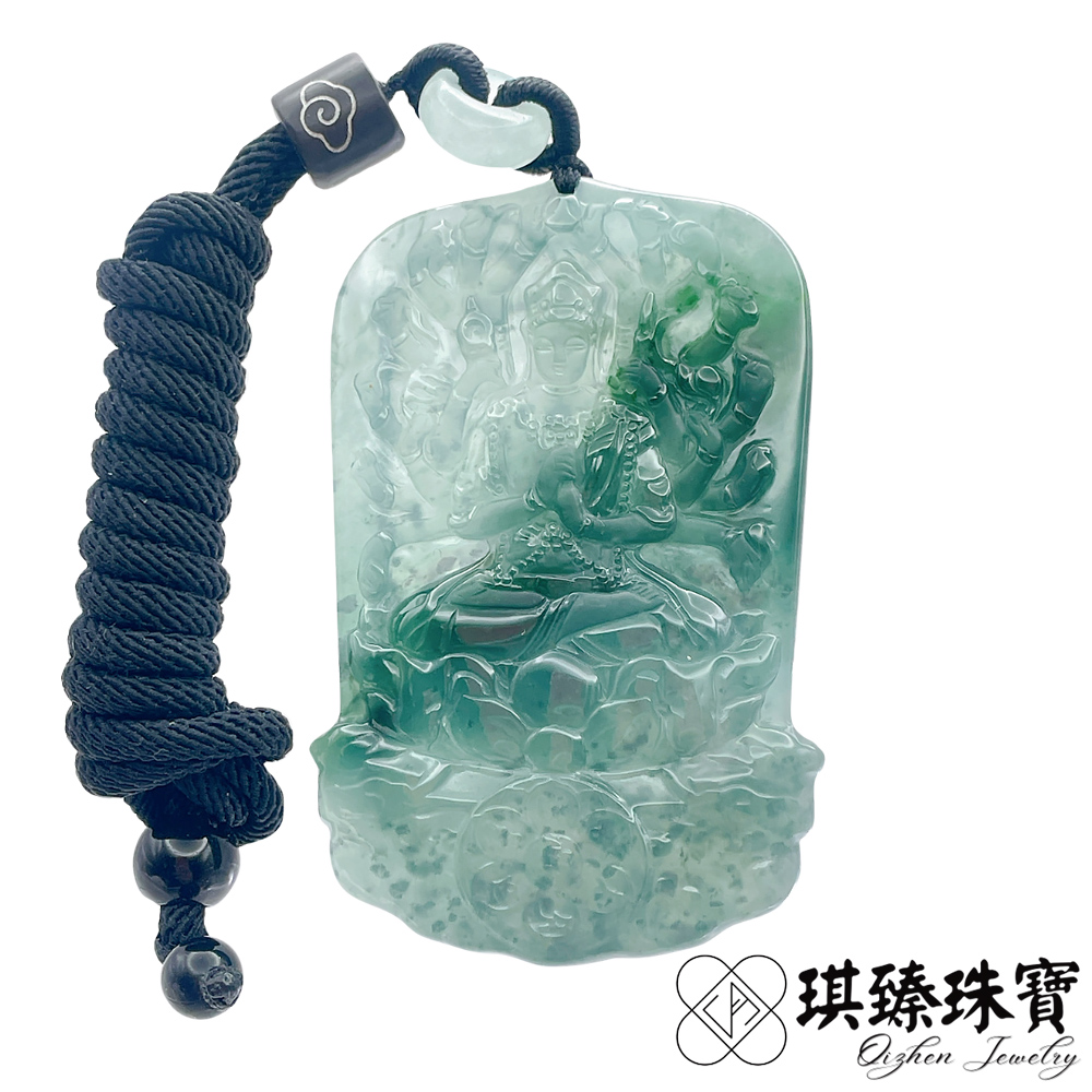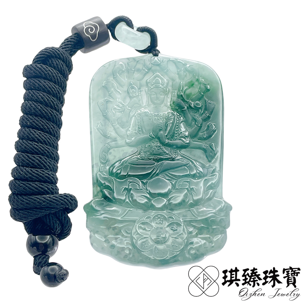 【琪臻珠寶】天然A貨翡翠糯冰藍水千手觀音吊墜(八大守護神_屬鼠本命佛_翡翠觀音_手工精雕)