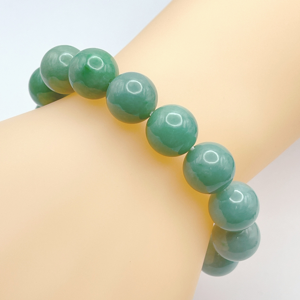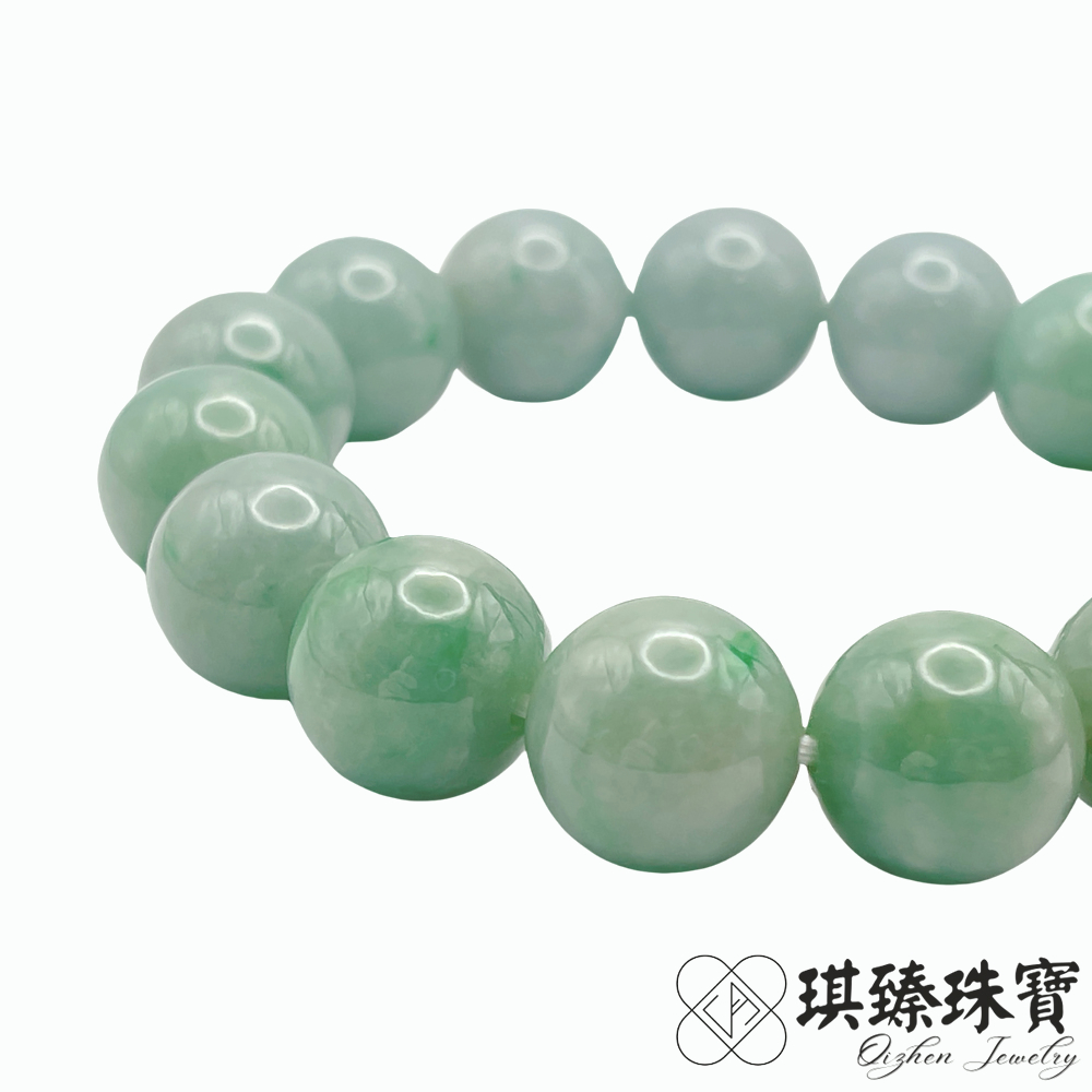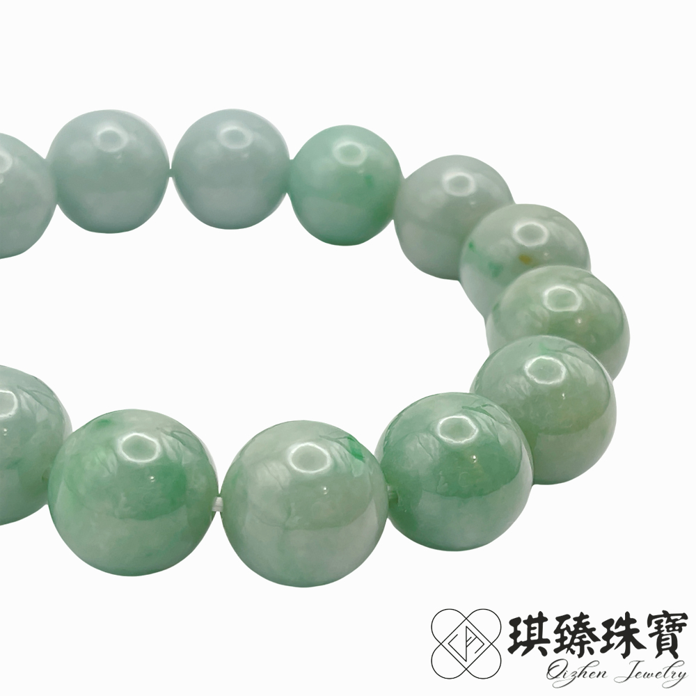 【琪臻珠寶】天然A貨翡翠糯種果綠圓珠手珠手串(13mm圓珠_緬甸玉_漸層果綠_隨機出貨)