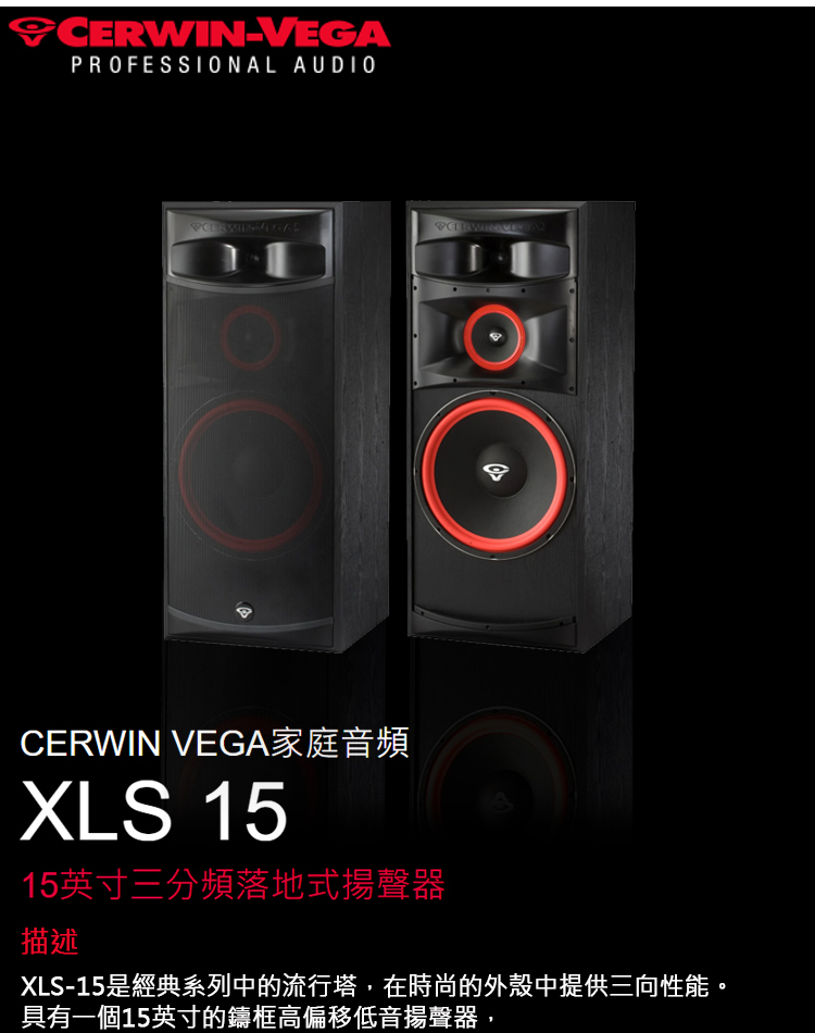 【CERWIN-VEGA美國大地震】XLS-15 單15吋落地喇叭(對)家庭劇院音響