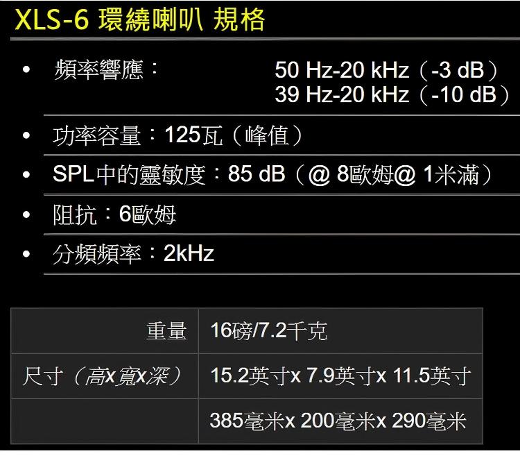 XLS-6 XLS 系列 6.5 吋兩分頻書架式揚聲器(單隻)