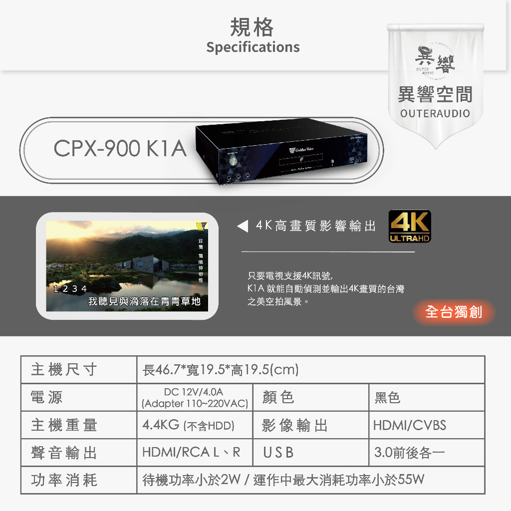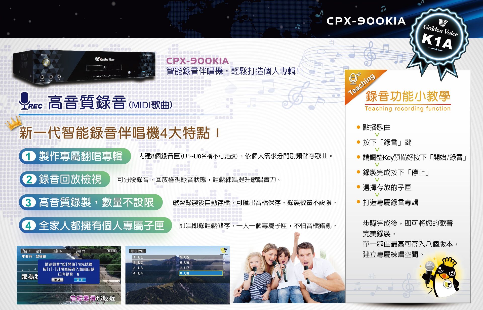 品牌:Golden Voice 金嗓 型號:CPX-900 K1A 保固:一年 貨源:公司貨 NCC:CCAJ13LP2160T9