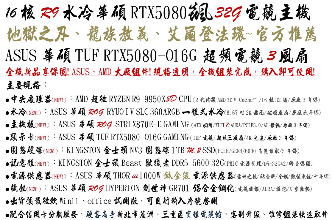 ●顯示卡(NEW!):ASUS華碩TUF RTX5080-O16G GAMING (TUF電競/超頻三風扇/4K光追/原廠3年保)