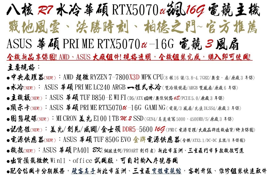 【八核R7水冷華碩RTX5070TI飇16G電競主機】