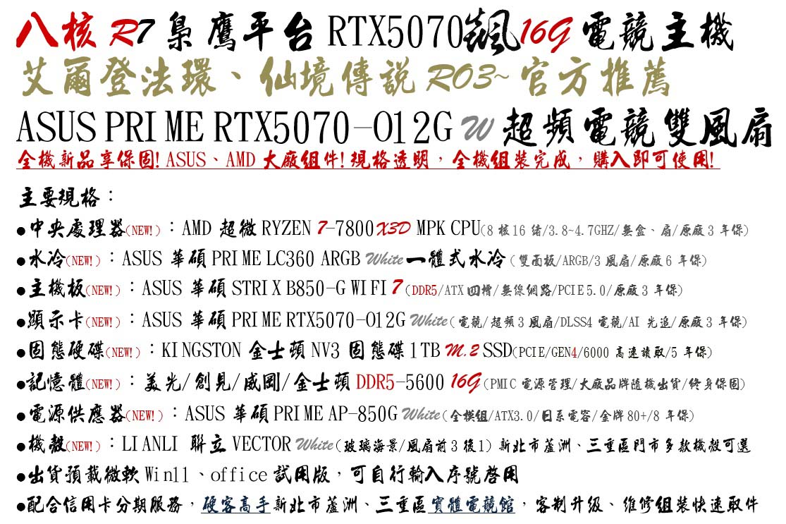 八核R7梟鷹平台RTX5070飇16G電競主機