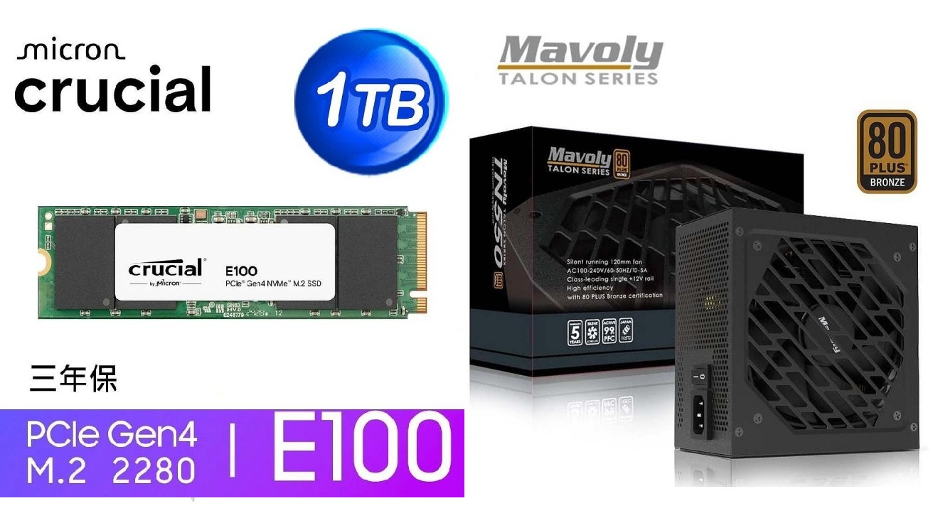●固態硬碟(NEW!):MICRON 美光E100 1TB M.2 SSD (GEN4/高速讀寫5000、4500MB/S/原廠3年保)