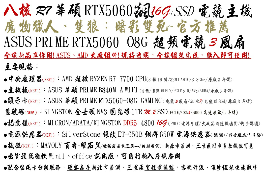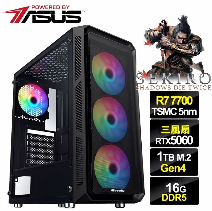 【八核R7華碩RTX5060飇16G+SSD電競主機】