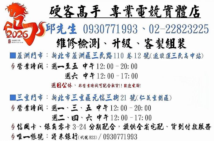 ●配合信用卡分期服務,硬客高手新北市蘆洲、三重區實體電競館,客制升級、維修組裝快速取件