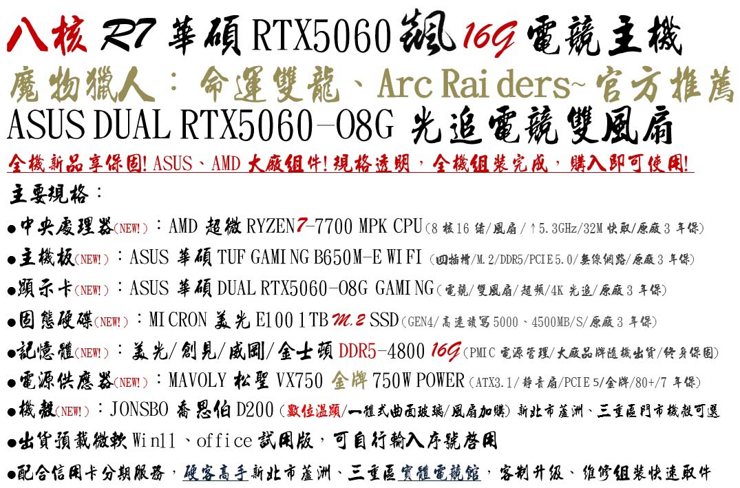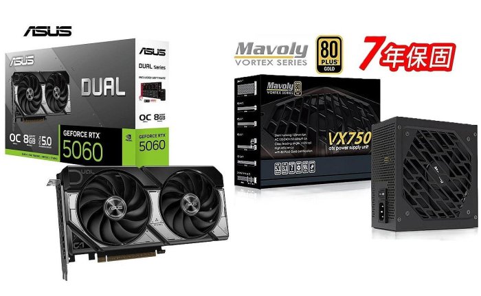 ●顯示卡(NEW!):ASUS華碩DUAL RTX5060-O8G GAMING (電競/雙風扇/超頻/4K光追/原廠3年保)