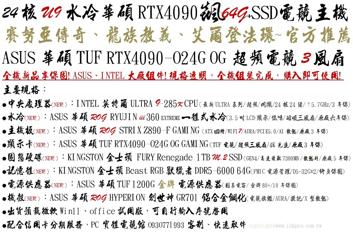 【24核U9水冷華碩RTX4090飇64G+SSD電競主機】