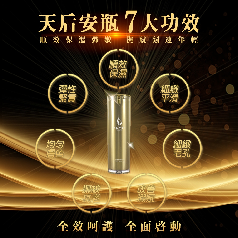 特潤超導全方位天后安瓶也可以當作「全效All in one」使用,洗完臉後,取適量塗抹於臉部以及頸部肌膚,輕拍至吸收,簡單快速一瓶搞定。