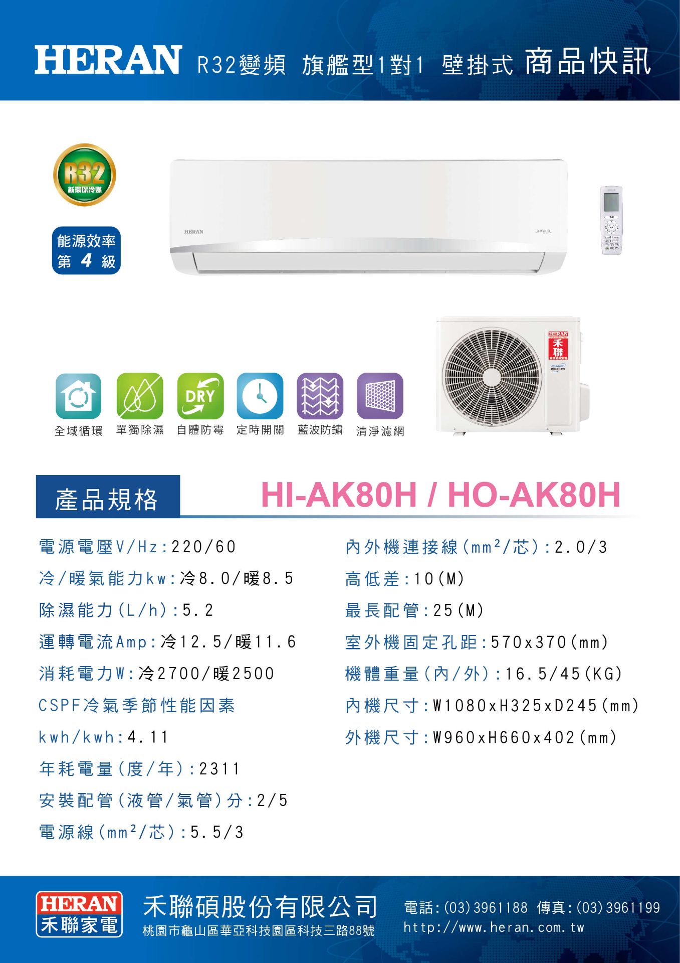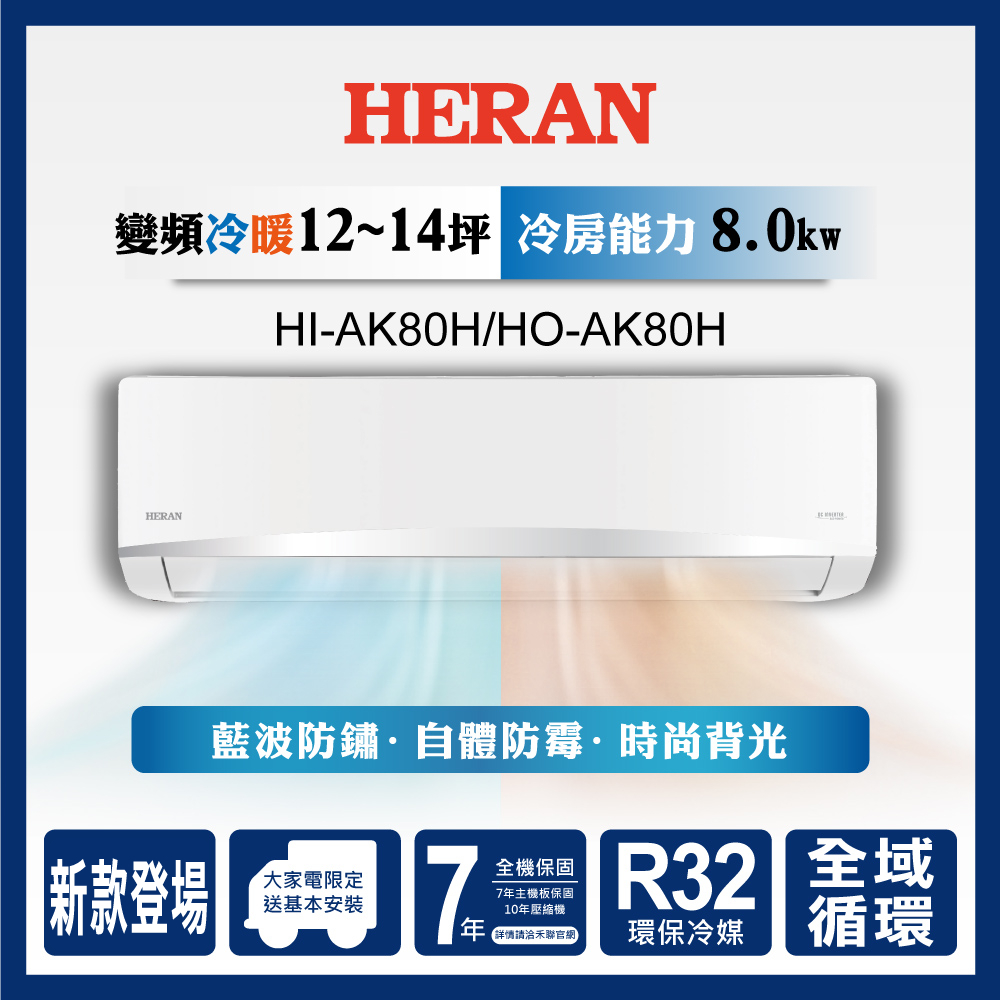 ※保固期:家用空調產品於禾聯碩官網(https://www.heran.com.tw)完成保證書登錄(請於購買日起一個月內完成登錄),即可享有全機保固7年/主機板保固7年/壓縮機保固10年;營業用(泛指非家用)僅全機三年保固。若有其他特殊情況請見產品保證書或撥打免付費客服專線0800-667-999。