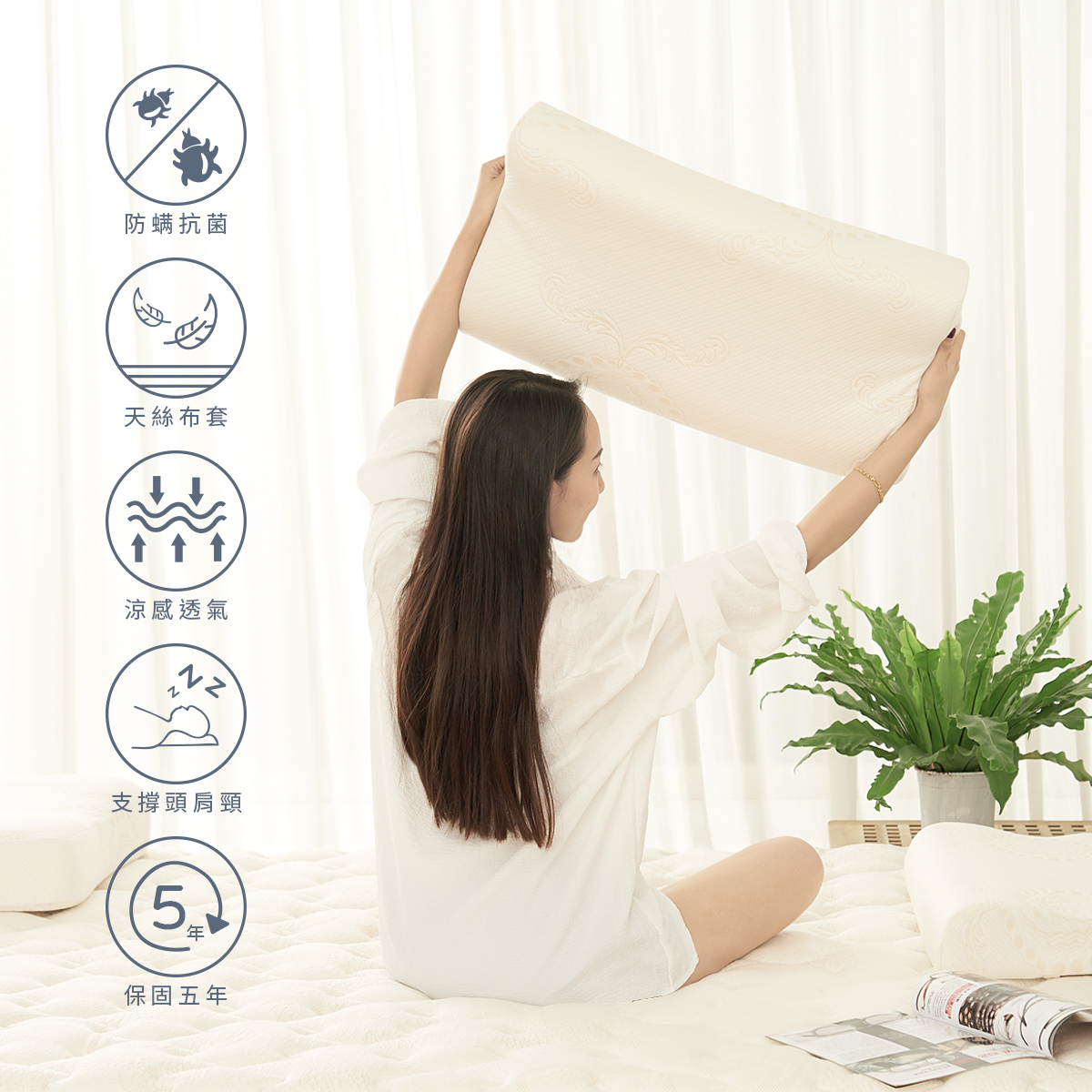 📌 枕芯使用涼感記憶綿,兼具乳膠的Q彈與記憶綿的服貼,給您柔軟包覆的睡眠感受。