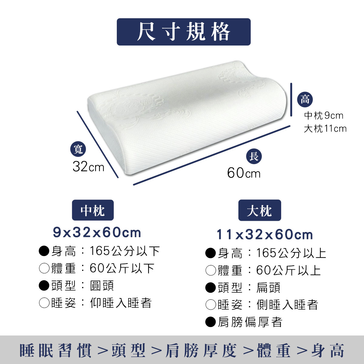 📌 LV記憶釋壓枕-中枕:高 9 x 寬 32 x 長 60 (公分)