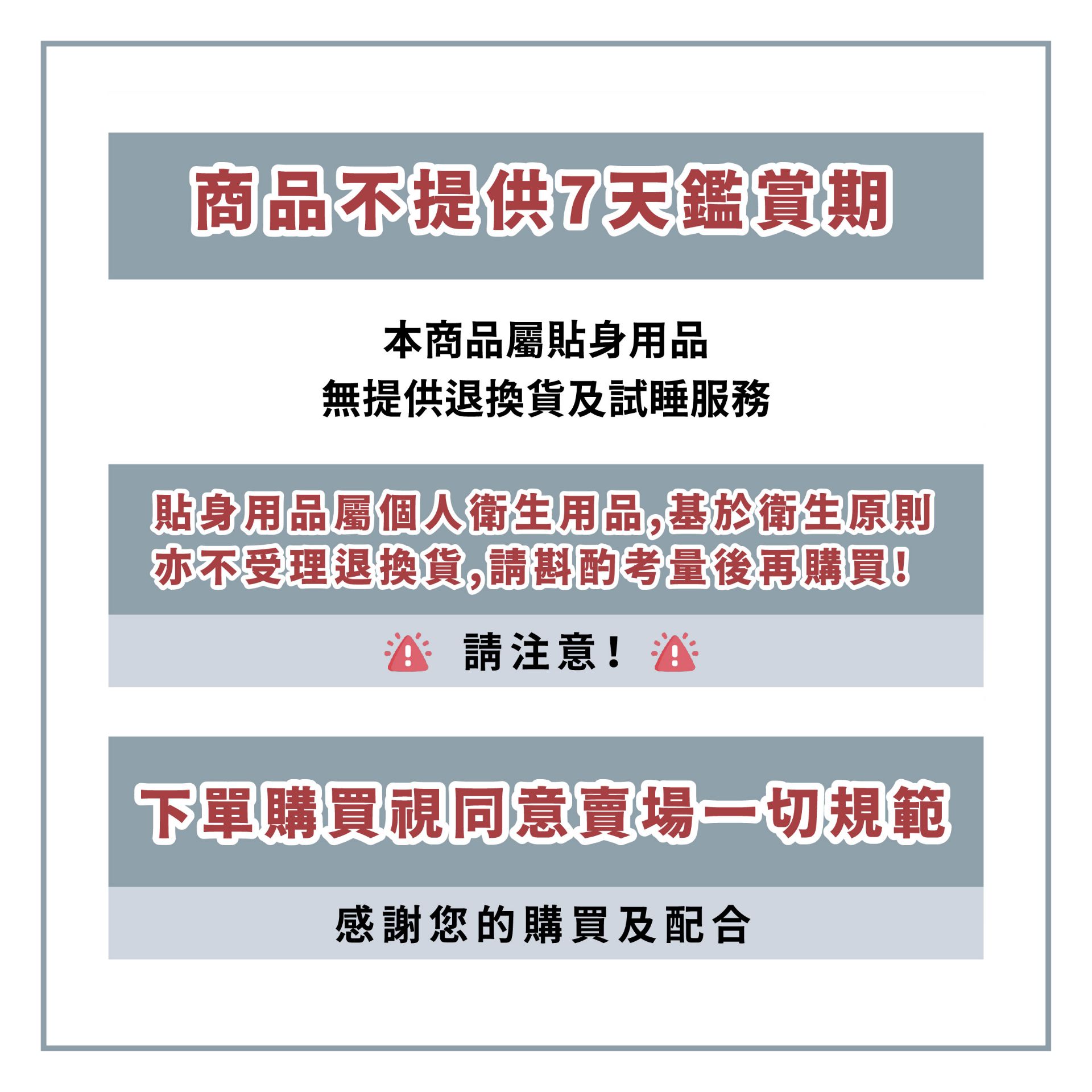 • 寢具類為個人衛生用品,如非瑕疵不接受退換貨,如退換貨須保持商品完整性,不可有髒汙異味。